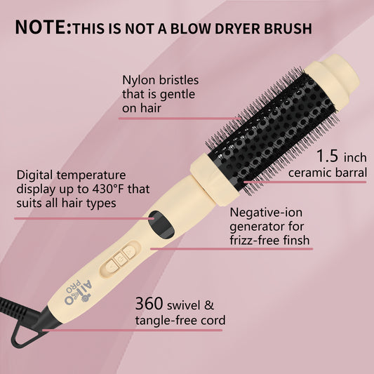 Thermal Brush for Blowout Look, 1.5 Inch Ceramic Heated Round Brush Makes Hair Shiny & Smooth, Ionic Hot Brush for Natural and Voluminous Curls, Easy to Use, Dual Voltage, Sandy