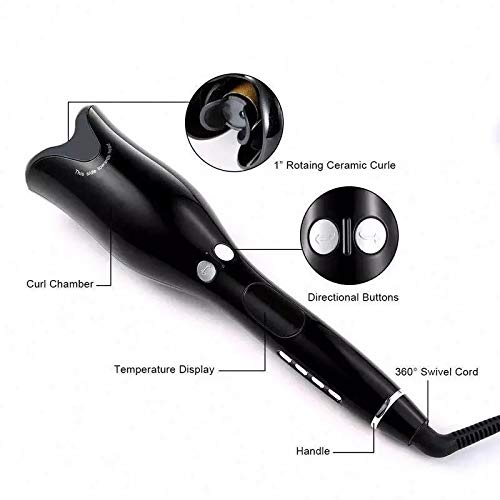 AIKO PRO Auto Rotating Tourmaline Ceramic 1.25 Inch Hair Curler Curling Iron Wand with LCD Adjustable Temperature Display and Anti-Scald Hot Brush Dual Voltage 100V-240V for All Types