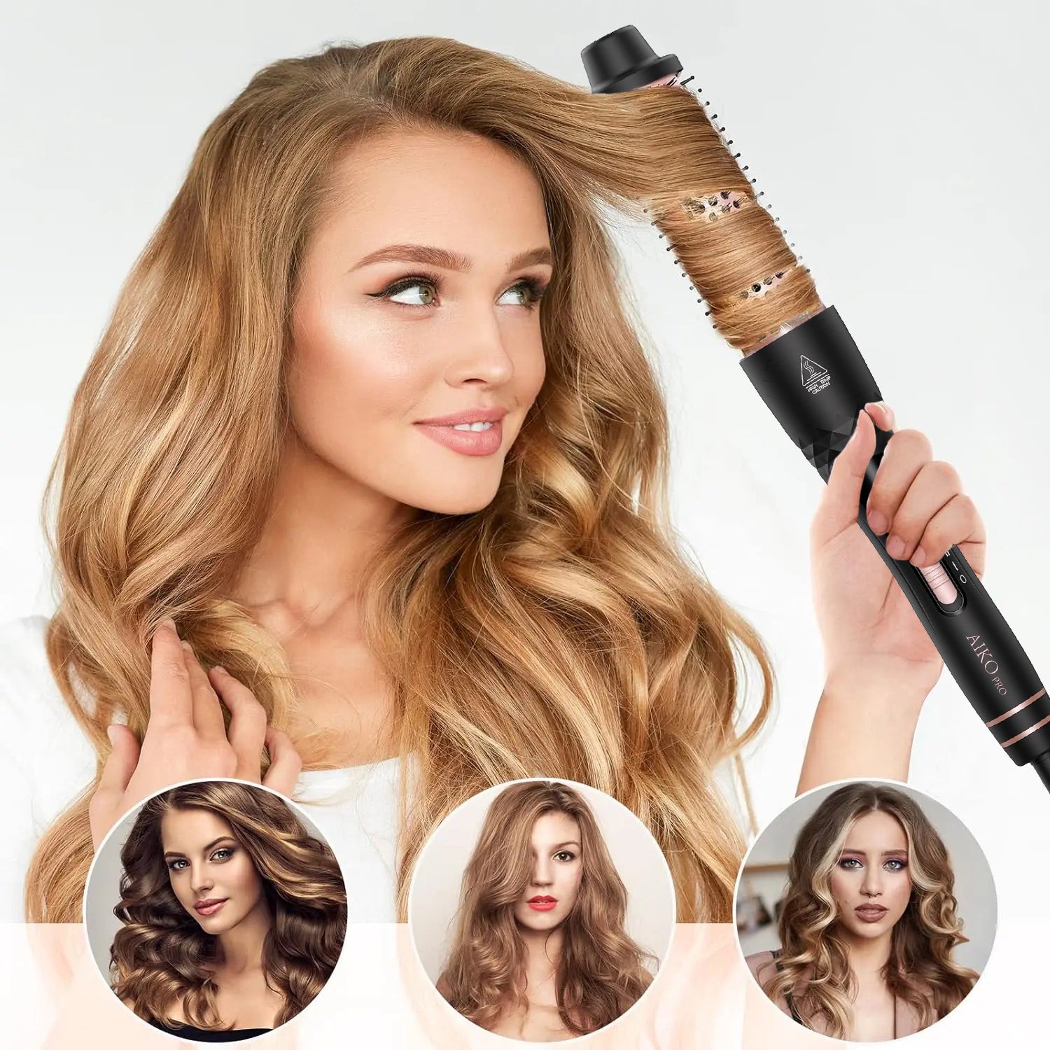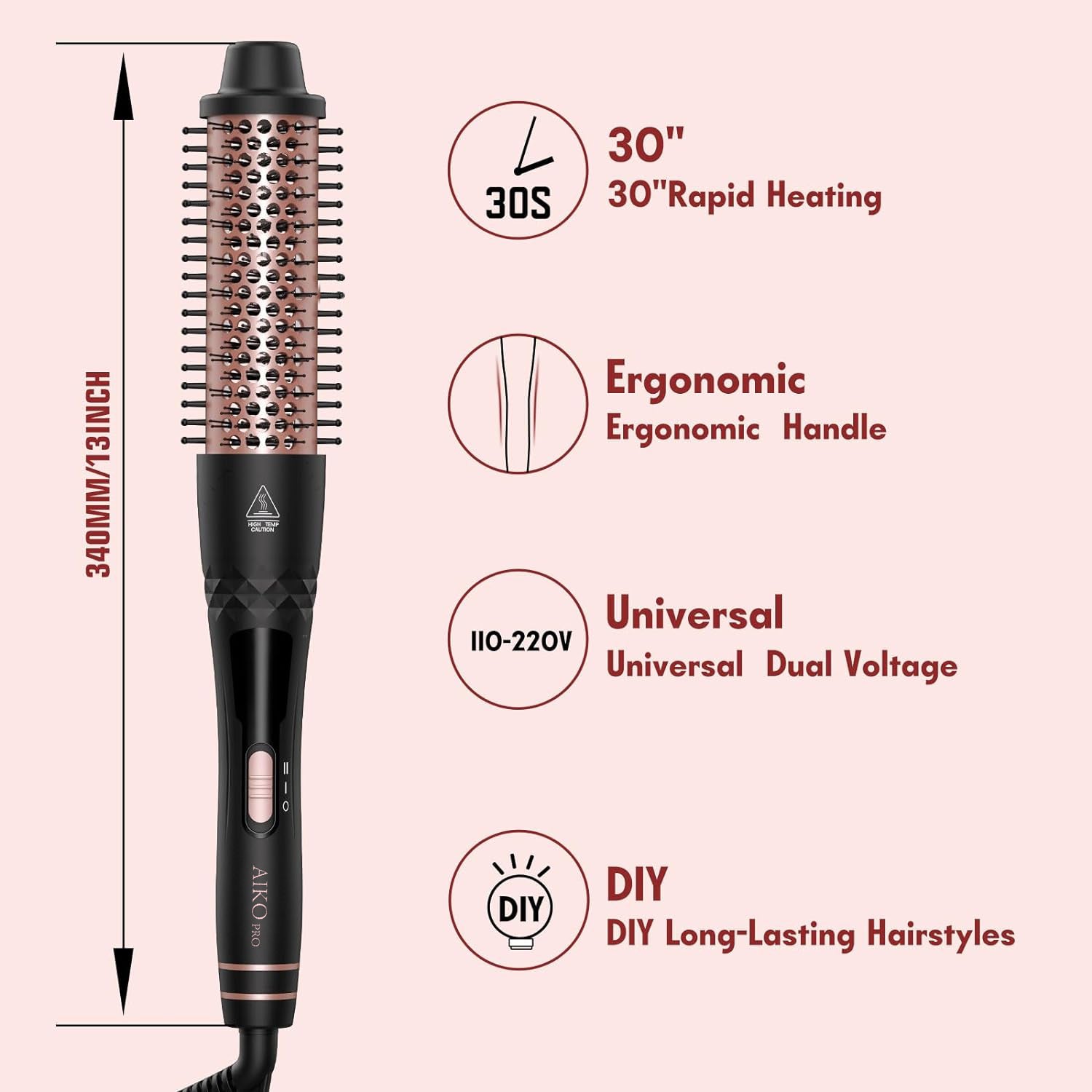 1.5 Inch Thermal Curling Brush for Natural Curls, Ionic Ceramic Heated Round Brush Adds Volume and Makes Hair Smoother, Dual Voltage Heated Round Brush Volumizer, Fast Heat-Up and Easy to Use