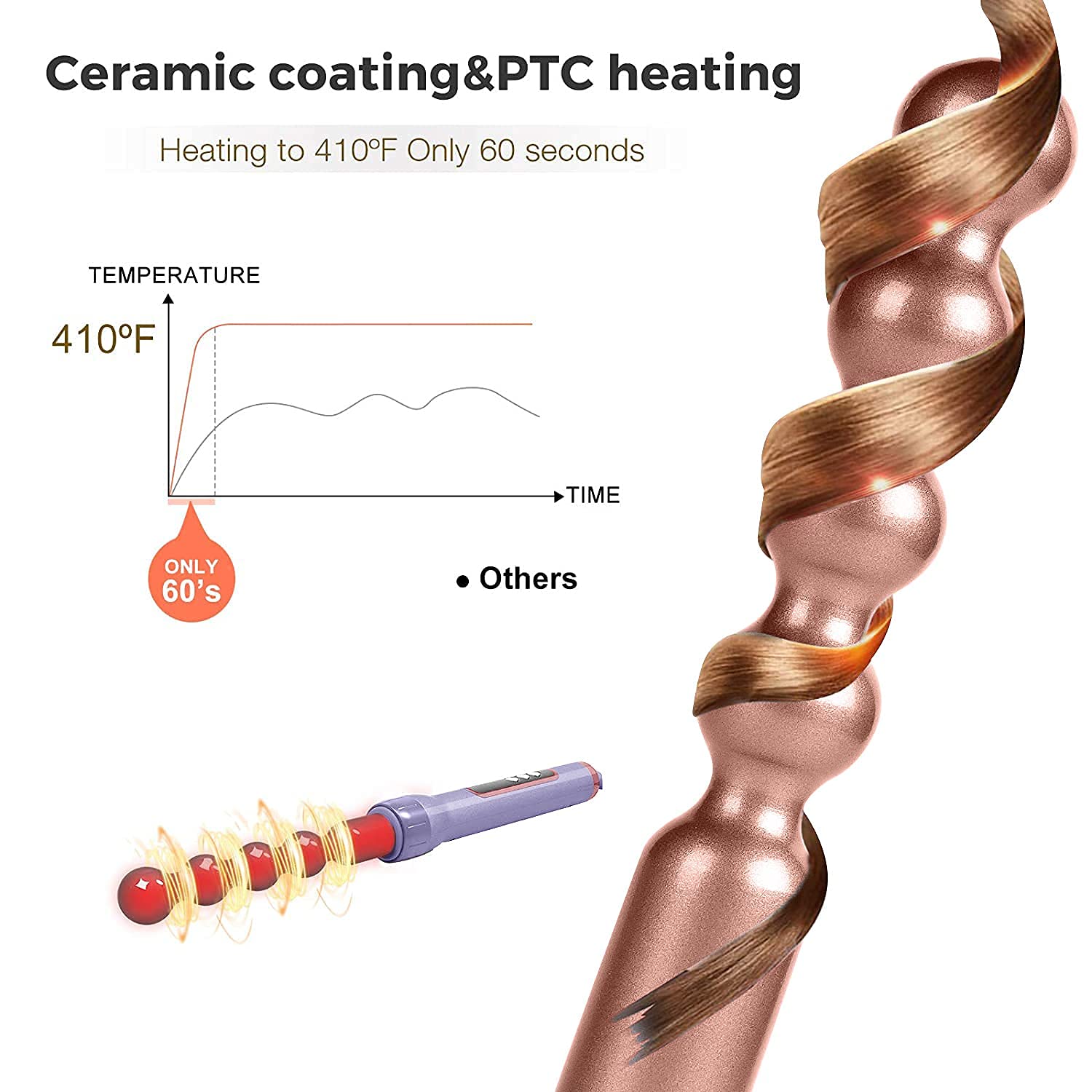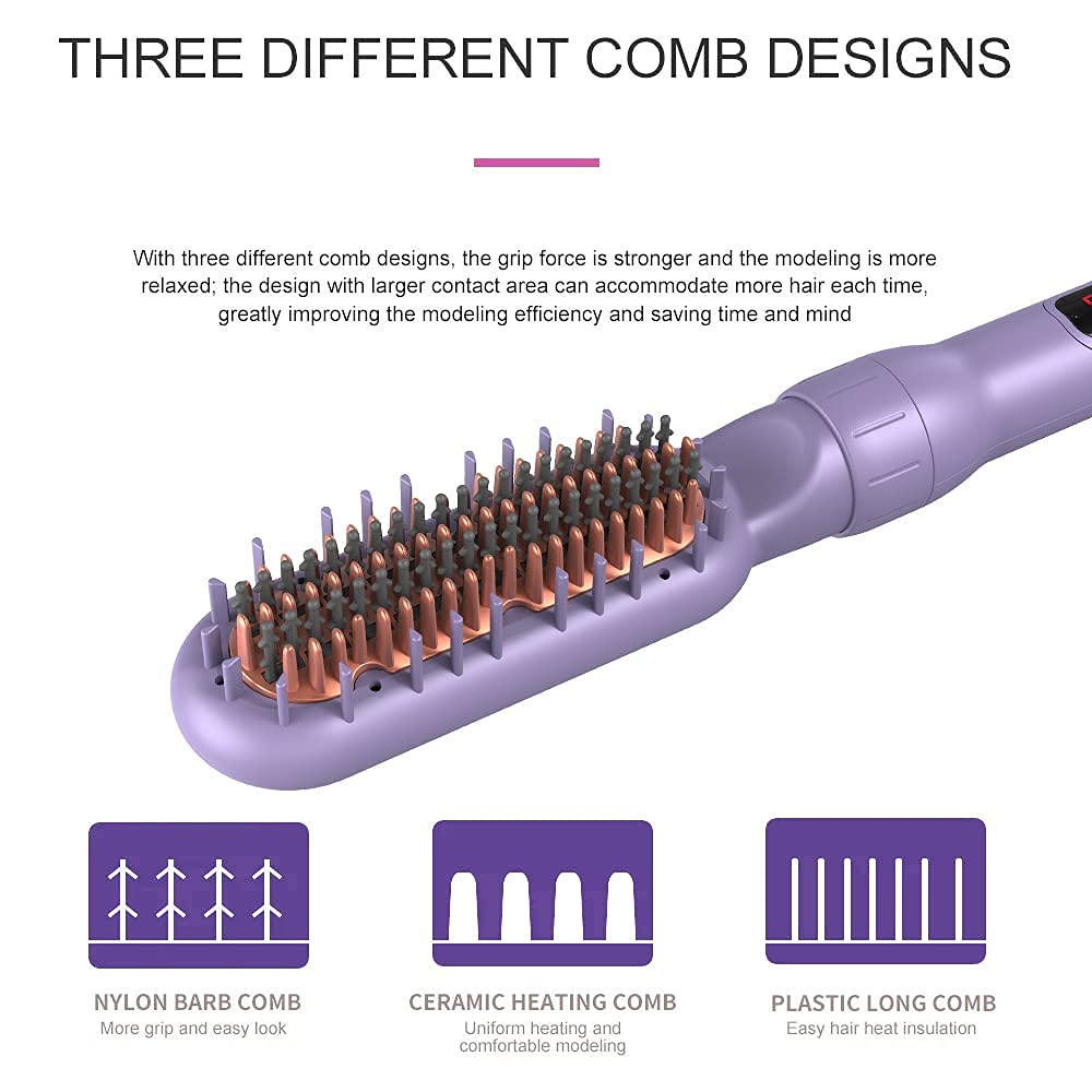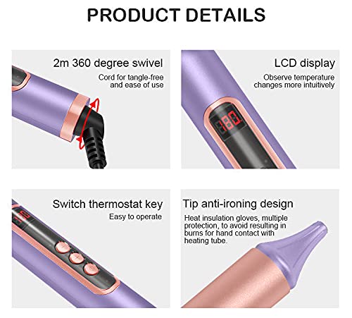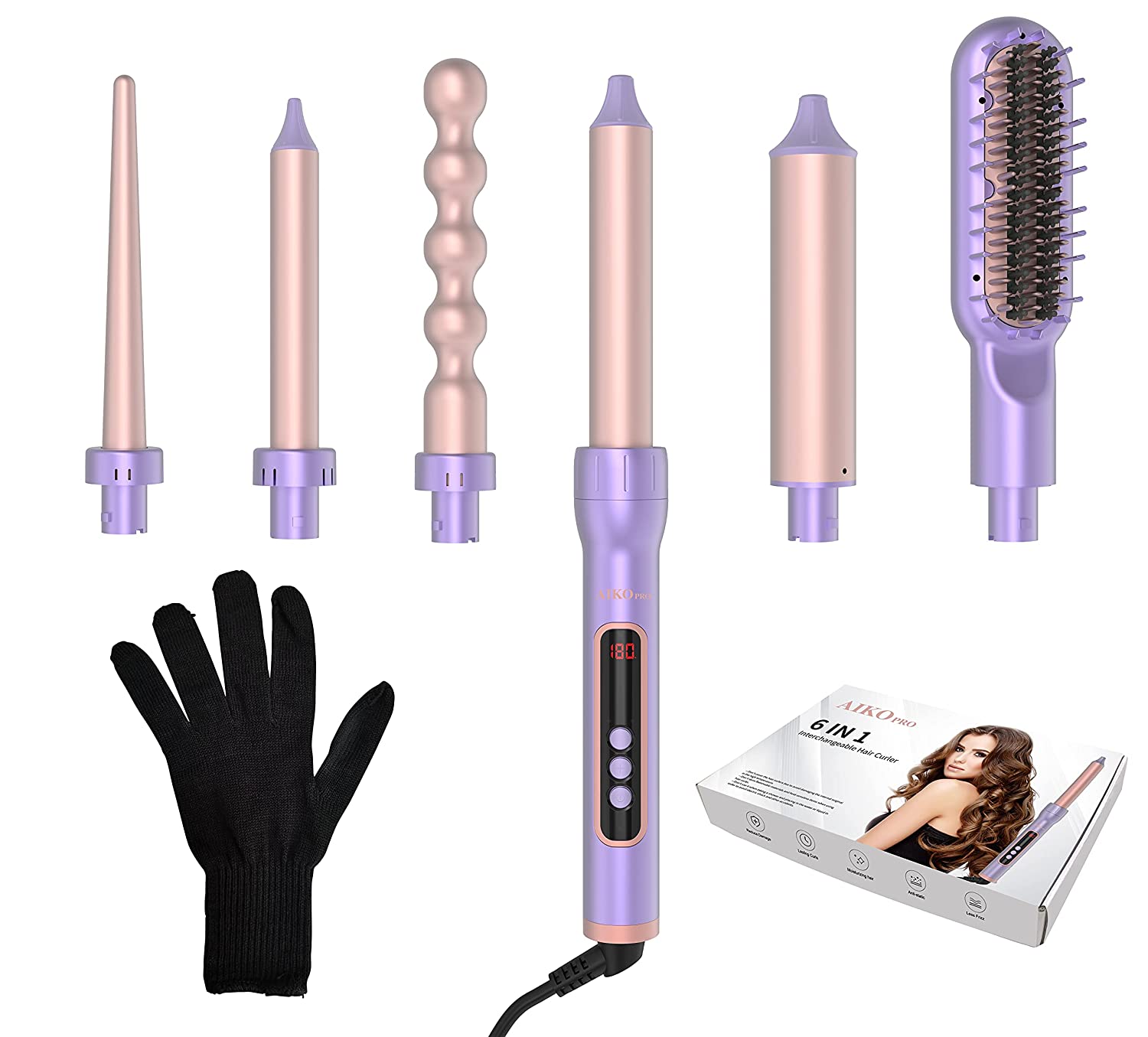 AIKO PRO 6 in 1 Interchangeable Ceramic Curling Iron, Wand Set with Hair Straightener Brush, Instant Heat-Up, Auto Shut Off LCD and Temperature Adjustment Include Glove, Dual Voltage, Purple
