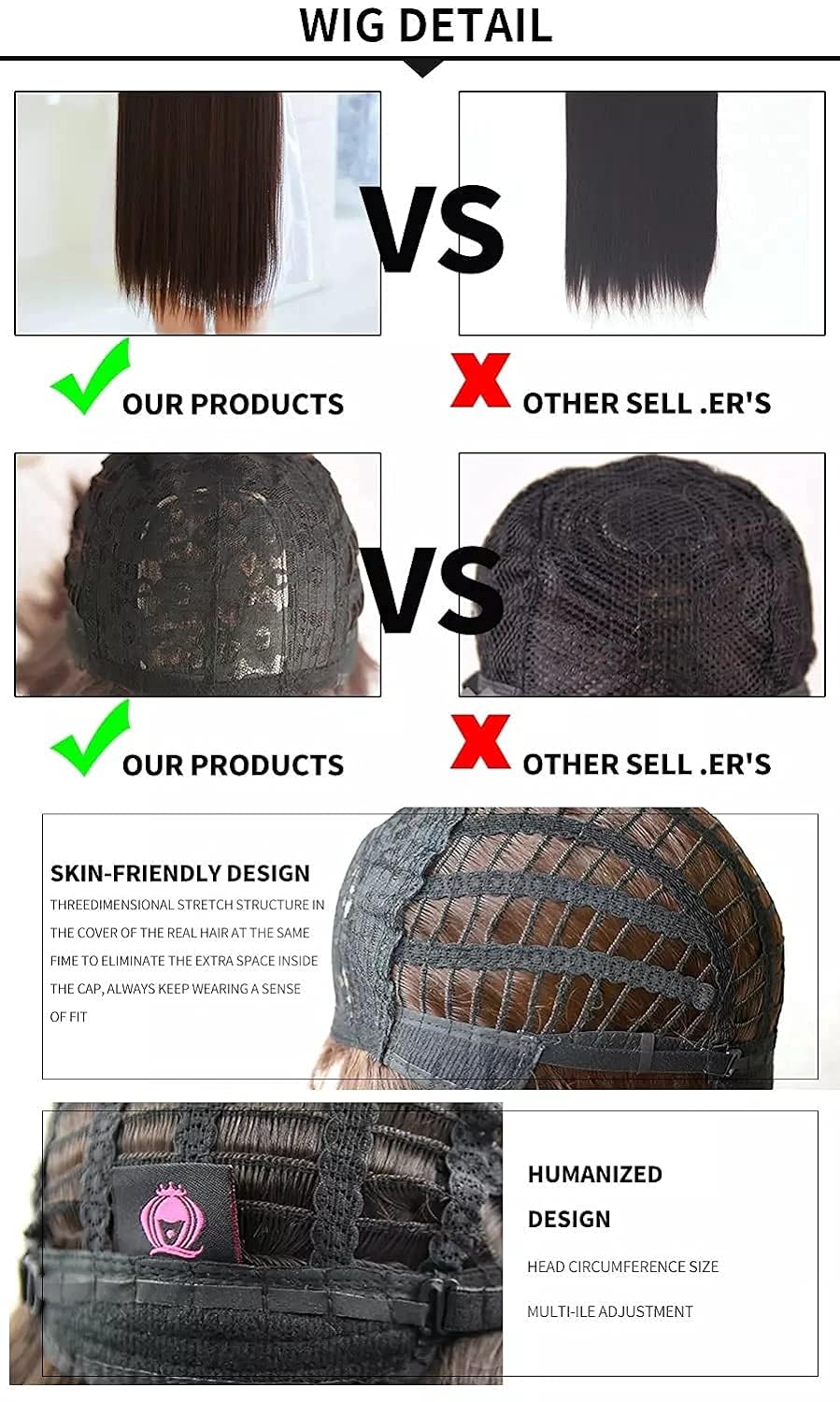 6. Package Including: 1x Wig Wig Cap Structure SIZE - This bob wig has adjustable hook straps. Easily adjust at the nape for a custom, secure fit. You can adjust the size of this wig from 14 inches to about 16 inches. Breathable Rose Net 100% breathable rose net within the network make you feel comfortable when you wear it. Two Adjustment Straps: There are two adjustment straps at two side of the wig, which can be intertwined to a fix position to suit different head sizes.