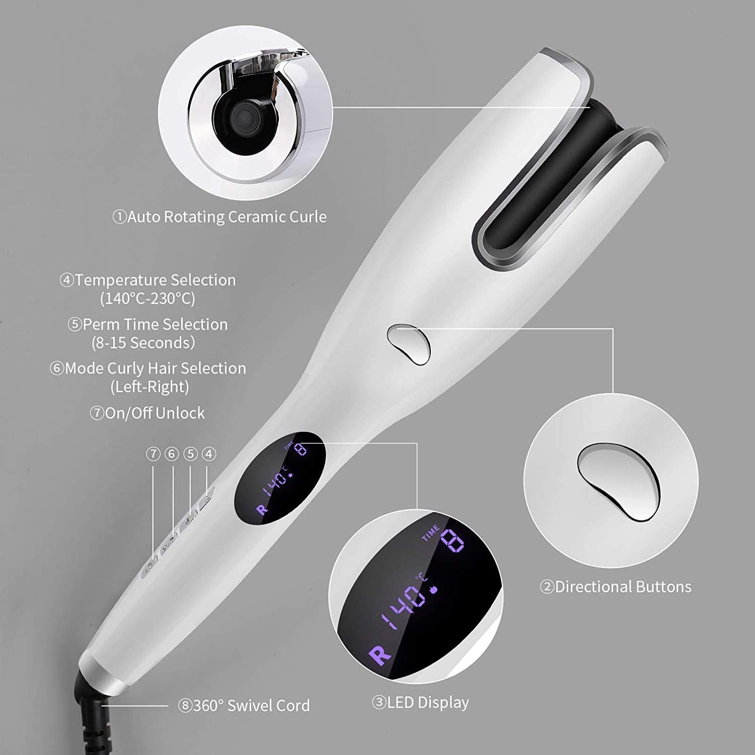 AIKO PRO LCD Automatic Ceramic Air Rotating Portable Curling Iron Wand Anti-Scald Hair Curler with LED Display, Adjustable Temp & Dual Voltage Air Spin N Curler Fast Heat-Up for All Hair Types